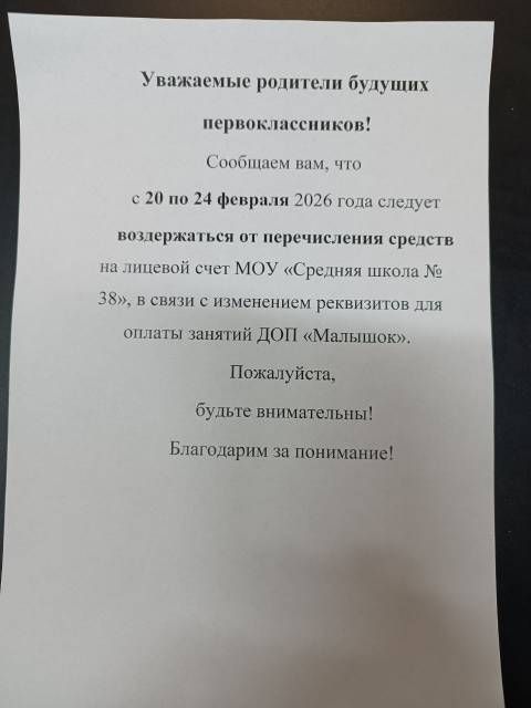 МОУ «Средняя общеобразовательная школа №38» объявляет набор в группы ДОП «Малышок» на 2025-2026 учебный год.