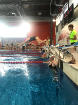 В программе командных заплывов - эстафета 4 по 25 метров вольным стилем. Первое место среди команд общеобразовательных организаций у школы № 38. На втором - команда Лицея № 13. Третье место заняла команда школы № 55.