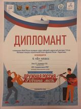 20 февраля на городском фестивале патриотической песни "Дружная Россия - Родина моя" выступил 4 б класс ( классный руководитель -Березкина Ольга Юрьевна.) вместе с Вовк Еленой Петровной.