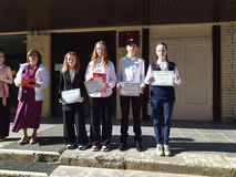 На линейках были отмечены обучающиеся — отличники, обучающиеся, которые на протяжении всего учебного года активно участвовали в городских и республиканских конкурсах, мероприятиях различных направлений, где достойно представили школу. В торжественной обстановке директор школы Екатерина Николаевна Бейм вручила обучающимся грамоты.
