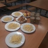 Порохова Мария Алексеевна, родитель учащейся 1Г класса, классный руководитель Ригоева Юлия Александровна, вместе с социальным педагогом Рыжих Е. А. посетила столовую, попробовала порцию - завтрак: макароны с сыром , чай с молоком и сахаром, булка, половинка яблока.
