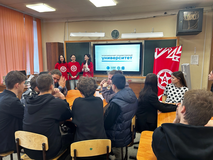 Команда адаптеров ПетрГУ: Елизавета, София и Татьяна встретились с учениками 10А класса.