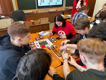 Они рассказали об институтах и профилях ПетрГУ . Также студенты сыграли с ребятами в игру «Шагай с ПетрГУ».