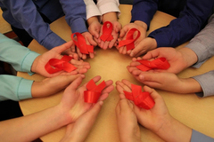 Символом борьбы со СПИДом является красная ленточка, ни одна акция в этой области не обходится сейчас без нее. Эта ленточка как символ понимания СПИДа была задумана весной 1991 года. Ее идея принадлежит художнику Франку Муру.