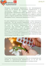 - Женщине, планирующей беременность (на прегравидарном этапе), за 2-3 месяца до наступления беременности и на протяжении первых 12 недель беременности также рекомендован пероральный прием фолиевой кислоты в дозе 400-800 мкг в день с целью снижения риска дефекта нервной трубки у плода (в соответствии с Клиническими рекомендациями Минздрава России “Нормальная беременность” 2023 г.).