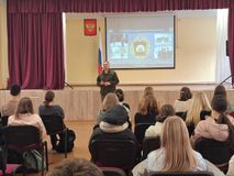 Дмитрий Владимирович рассказал ребятам об училище, особенностях образовательного процесса и о новой специальности "Боевое применение подразделений БпЛА".