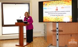 Теме войны в творчестве народных писателей Карелии были посвящены выступления кандидата филологических наук, доцента кафедры прибалтийско-финской филологии ПетрГУ Марии Владимировны Казаковой и главного библиотекаря Центральной городской библиотеки им. Д.Я. Гусарова Ольги Алексеевны Балжиням.