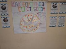 Для помощи в проведении мероприятий были приглашены студенты кафедры психологии Петрозаводского Государственного Университета для проведения занятийс учениками «Способы борьбы со стрессом перед экзаменами». Психологи посетили 9е и 11е классы нашей школы, поделились способами борьбы со стрессом, своим личным опытом успешной сдачи экзаменов и секретами поступления в университет.