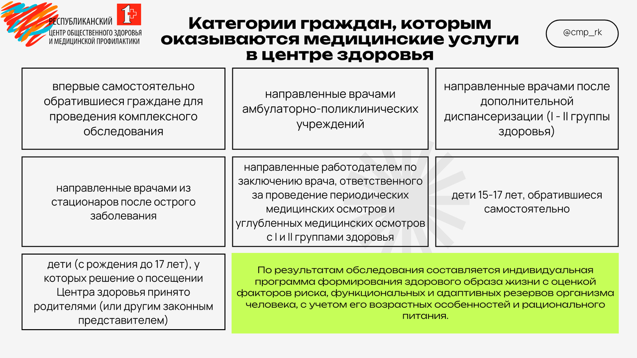11. Категории граждан, которым оказываются медицинские услуги в центре здоровья: