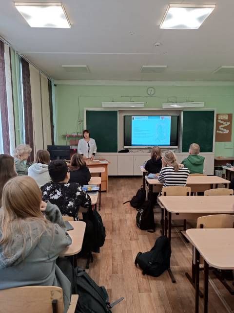 14 октября 2025 года в 12:30 состоялась встреча с медицинским специалистом врачом-пульмонологом ГБУЗ РК "Республиканского центра общественного здоровья и медицинской профилактики" Матвейчук Валентиной Захаровной. Валентина Захаровна провела беседу с учащимися 8Г класса на тему "Профилактика табакокурения среди молодежи" в рамках цикла профилактических бесед о здоровом образе жизни. Матвейчук В.З. напомнила ребятам о пользе здорового образа жизни и хороших привычек, а также о вредном влиянии табака и табачных изделий на здоровье несовершеннолетних. Ребята слушали внимательно, задавали вопросы.