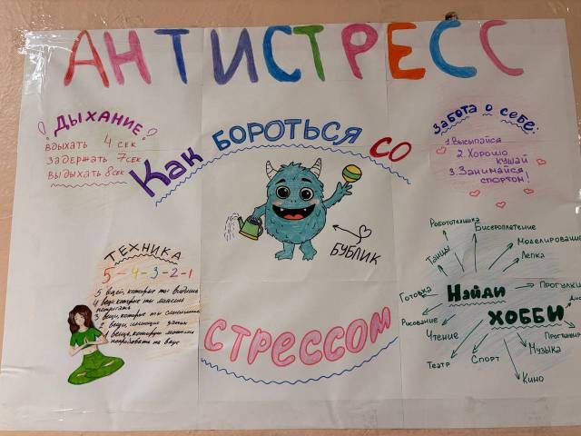 В этом году тематикой осенней недели психологии стало здоровье. Психическое и физическое. Учеников школы ожидали интересные мероприятия, которые помогли им понять: как же быть здоровым. Среди мероприятий были тренинговые занятия от инициативной группы 9 "В" класса на тему здоровых взаимоотношений в коллективе, также учащиеся провели психологическую мастерскую, где ученики разработали советы по борьбе со стрессом и оформили в яркий стенд на втором этаже.
