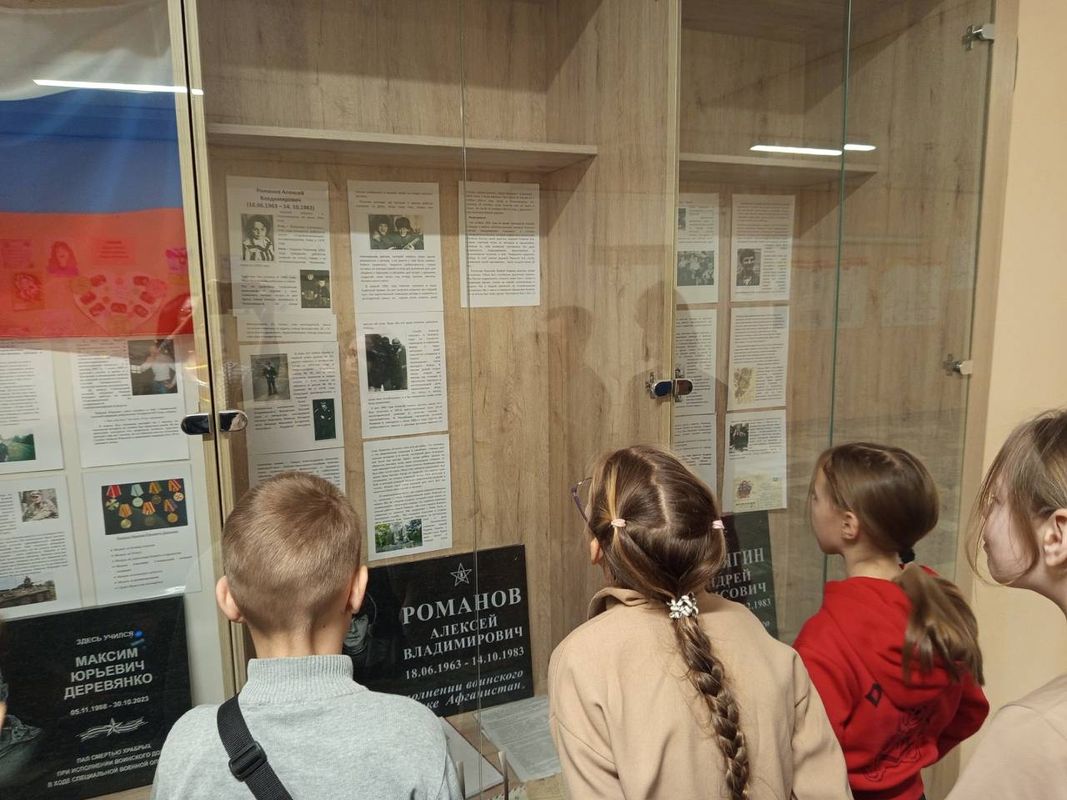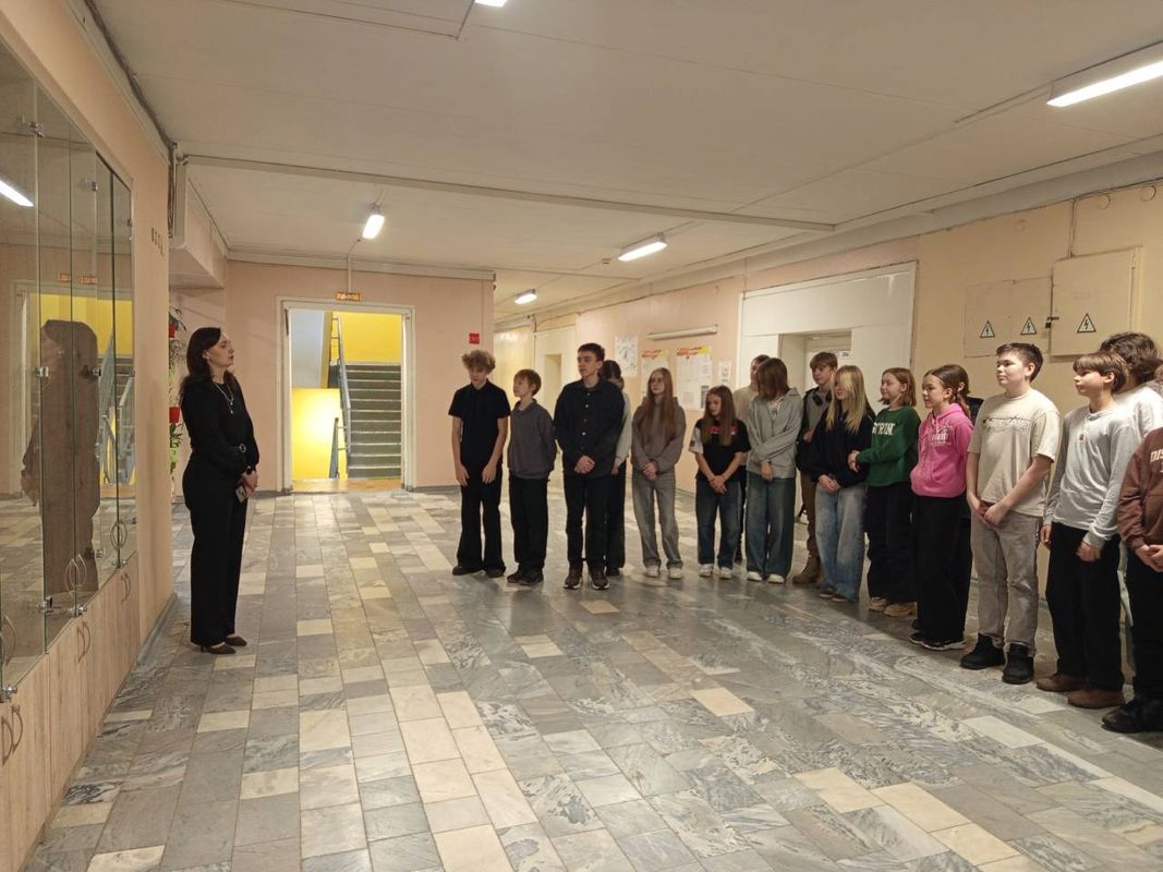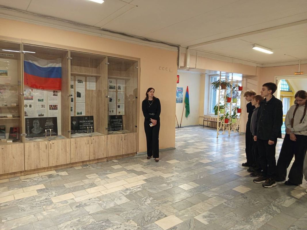 Учитель истории и обществознания Мария Игоревна Никитина и советник по воспитанию провели экскурсии для учеников школы по историко-патриотической экспозиции «По страницам истории».