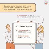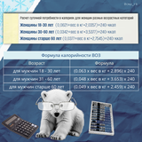 - Важен адресный подход в оценке калорийности рациона, необходимо учитывать индивидуальные характеристики человека: пол, возраст, уровень физической и двигательной активности, а также массу тела.