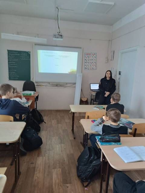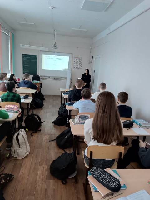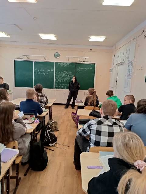 22 января 2026 года инспектор ПДН ОП номер 1 УМВД России по г.Петрозаводску Климанова Арина Витальевна в 10:30 провела 2 профилактические беседы по профилактике правонарушений среди несовершеннолетних в 7А и 6Б классах. Арина Витальевна затронула тему межличностных отношений, намеренные оскорбления, нанесение телесных повреждений, курение и мера ответственности школьников за противоправные действия. Ребята слушали внимательно, задавали вопросы.