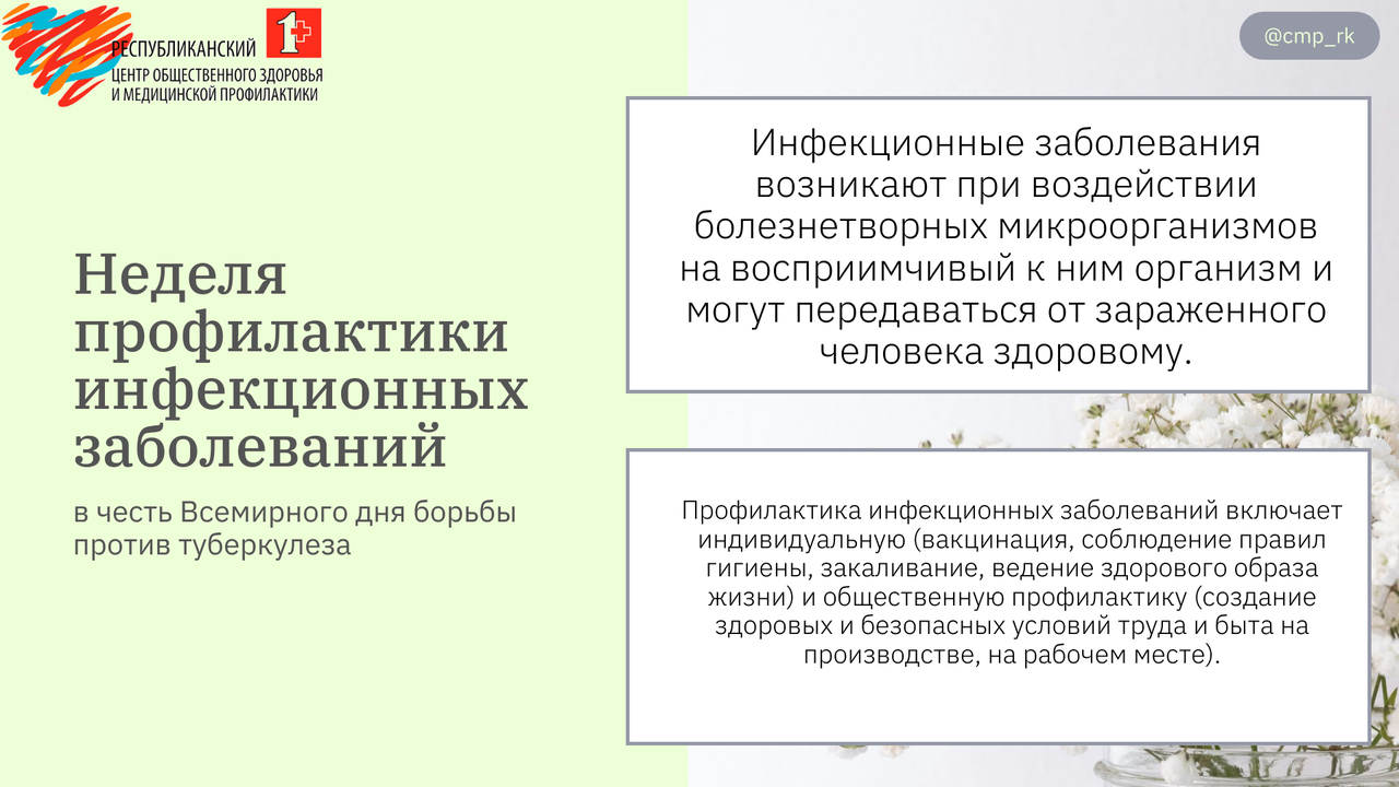 23-29 марта: Неделя профилактики инфекционных заболеваний (в честь Всемирного дня борьбы против туберкулеза)