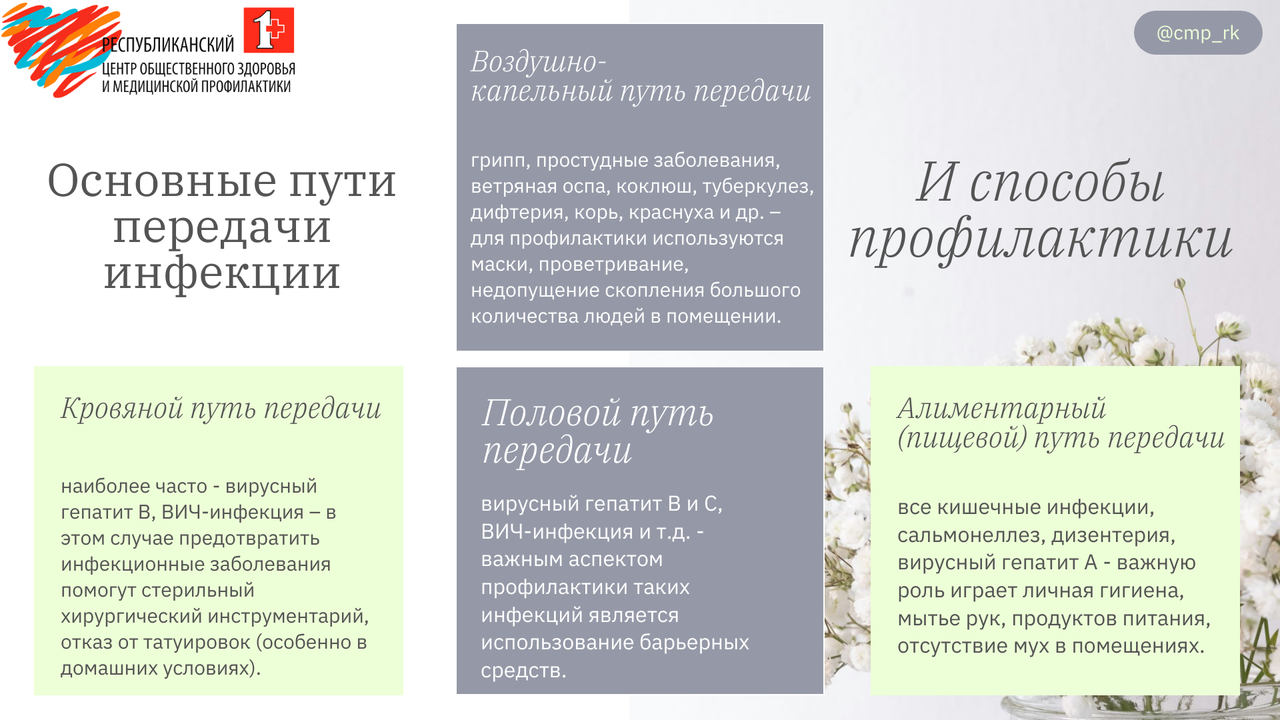 - Основные пути передачи инфекции и способы профилактики: