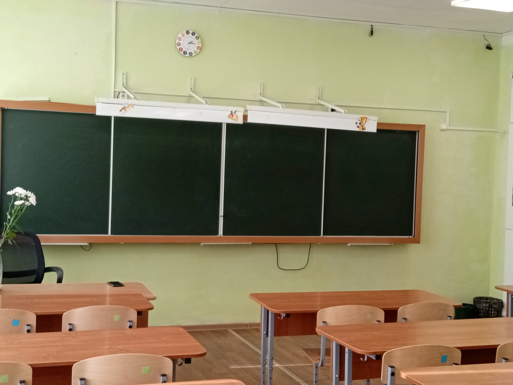 Стулья ученические - 16 шт Парта ученическая - 8 шт Доска классная - 1 шт Стол учительский - 1 шт, кресло учительское - 1 шт, Шкаф- 4 шт |